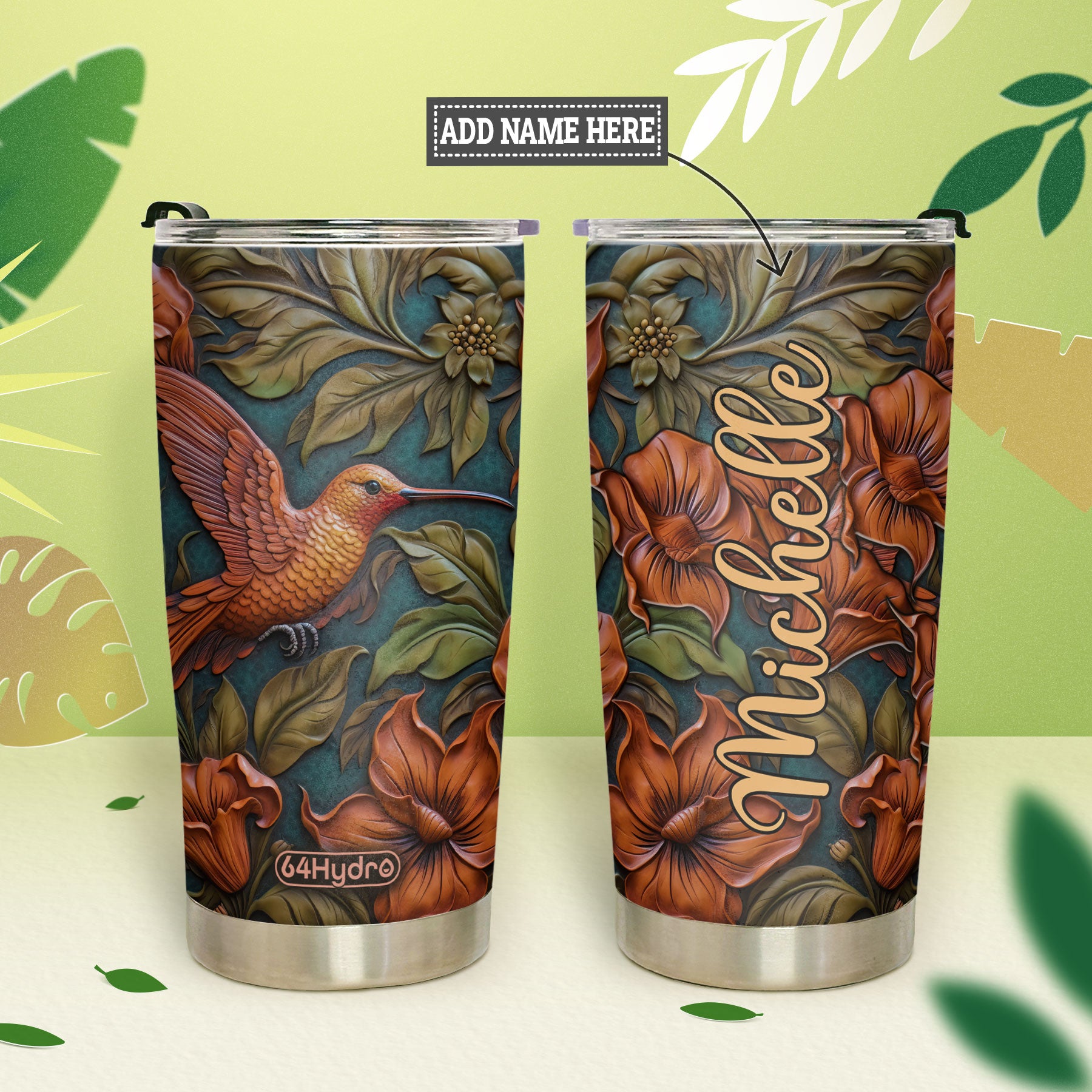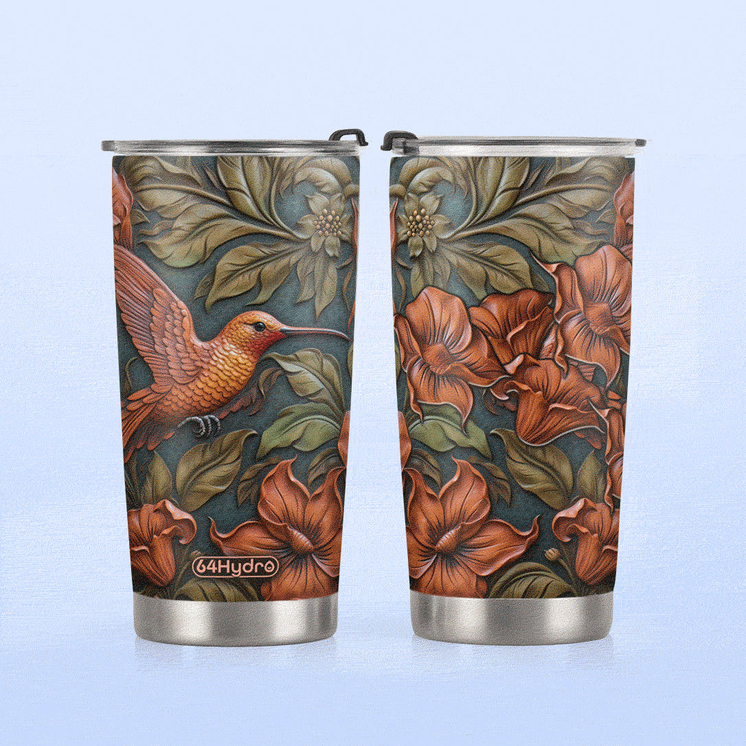 Product Name: Hummingbird Leather Carving HHAY100723459 Stainless Steel Tumbler