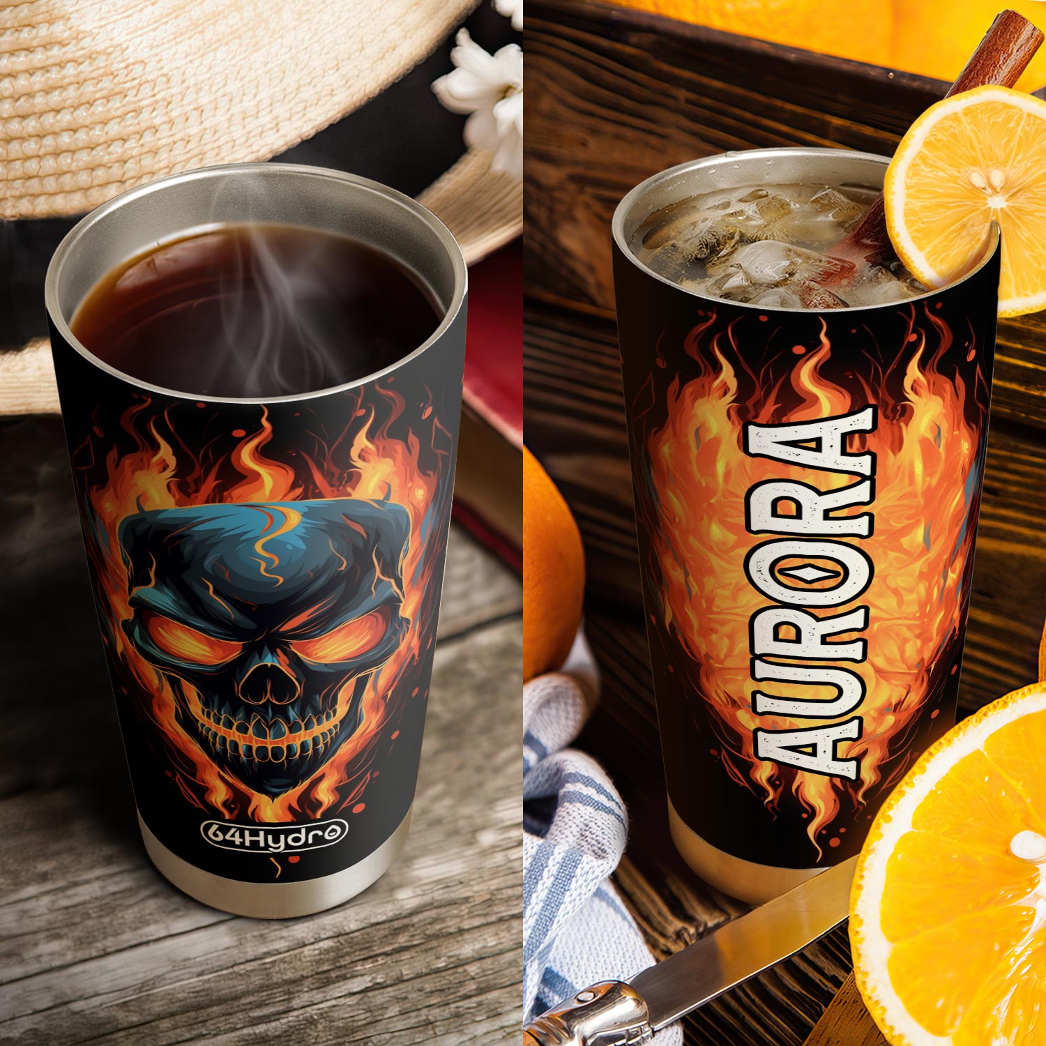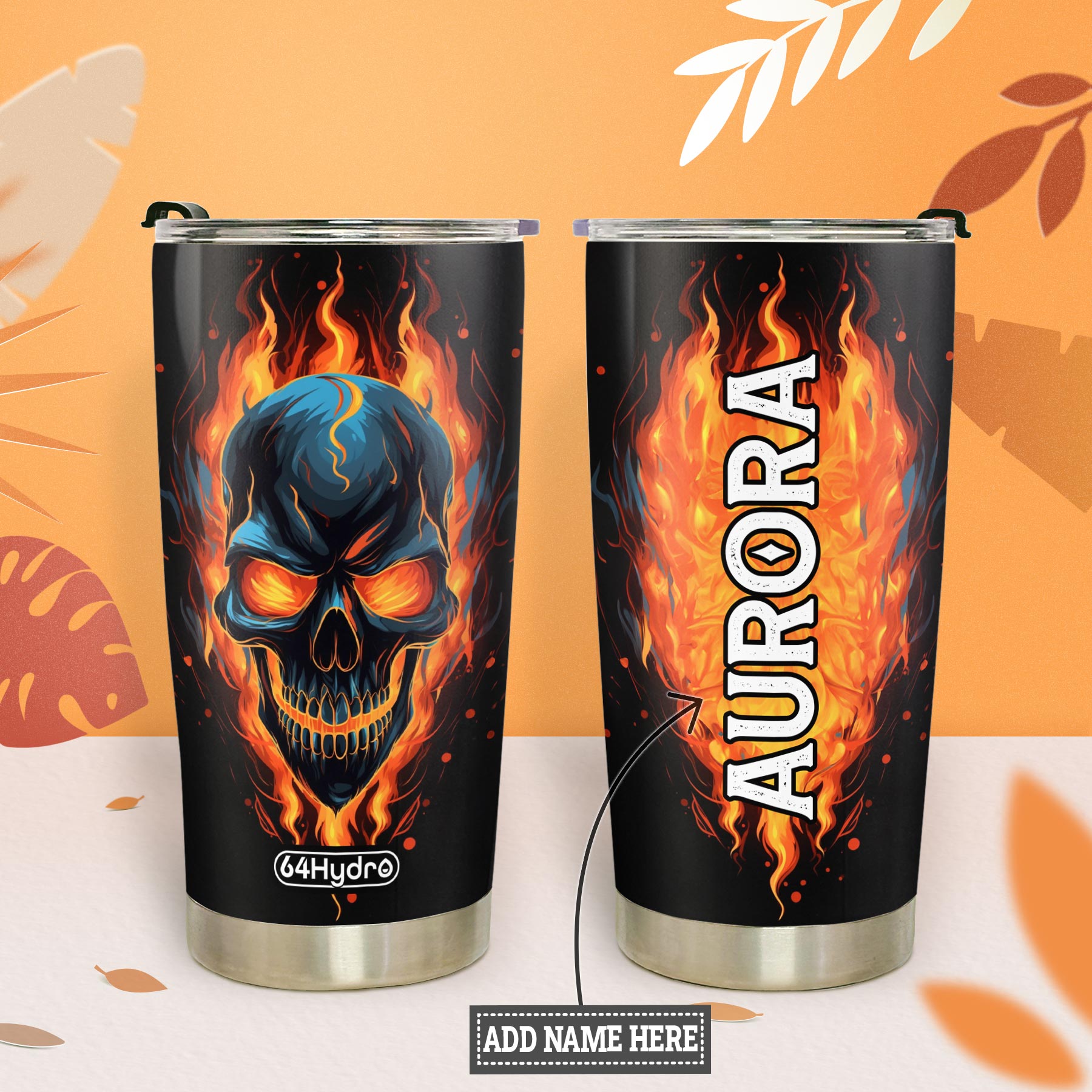 Product Name: Skull On Fire HTRZ27090033PW Stainless Steel Tumbler