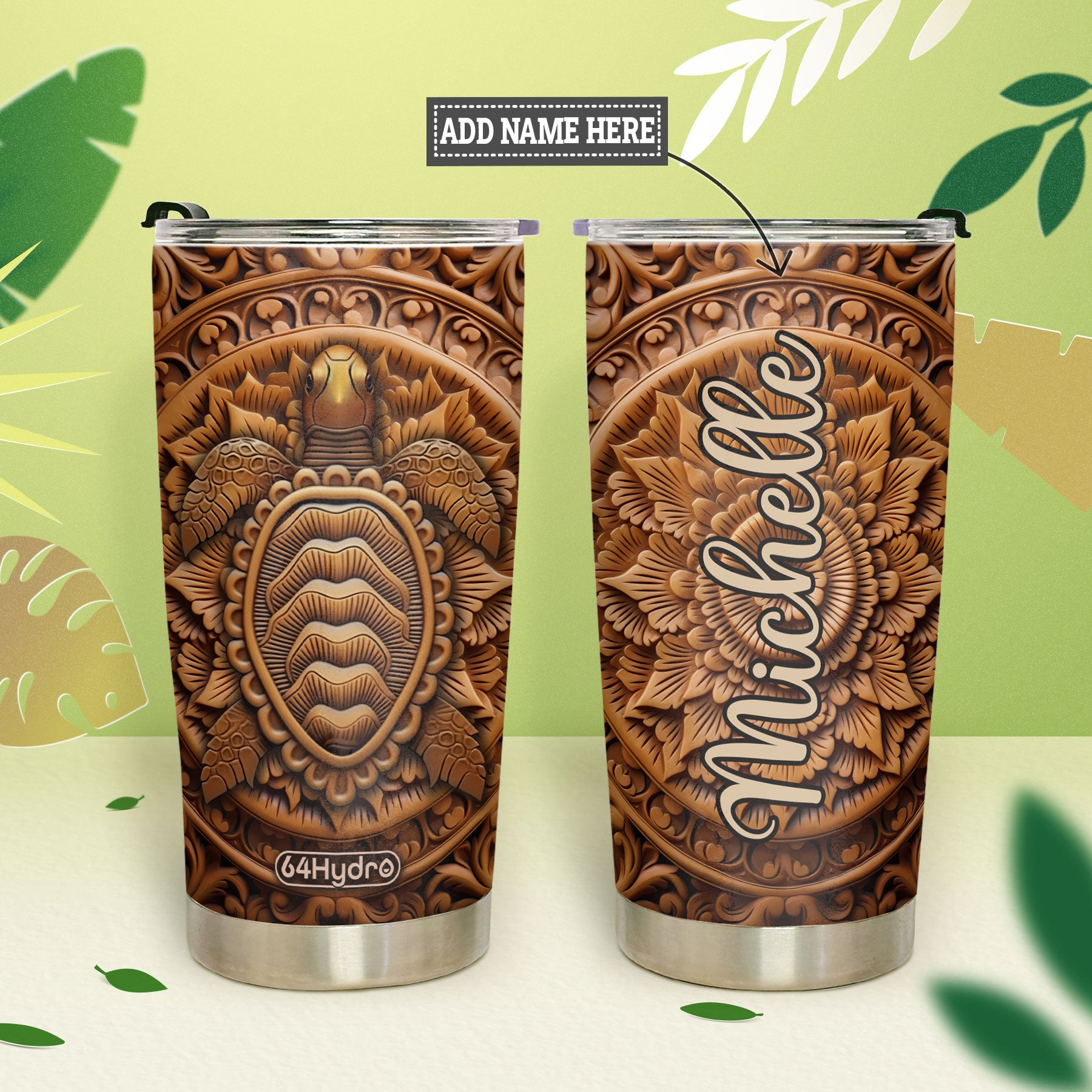 Product Name: Turtle Leather Carving HHAY070723795 Stainless Steel Tumbler